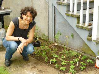 Lastly, I’d like to tell you about my friend Leslie and how, knowing that I would never plant the herbs she gave me for my birthday (and that I would kill them), planted an entire herb garden in my backyard today. She knows, in her infinite wisdom, that having fresh herbs on hand at all times will allow me to do even LESS last minute, annoying food shopping, since I will always be prepared and have them when I need them to whip up a great meal or a snazzy garnish. She rocks (and check her out with her cool shirt in the video below).