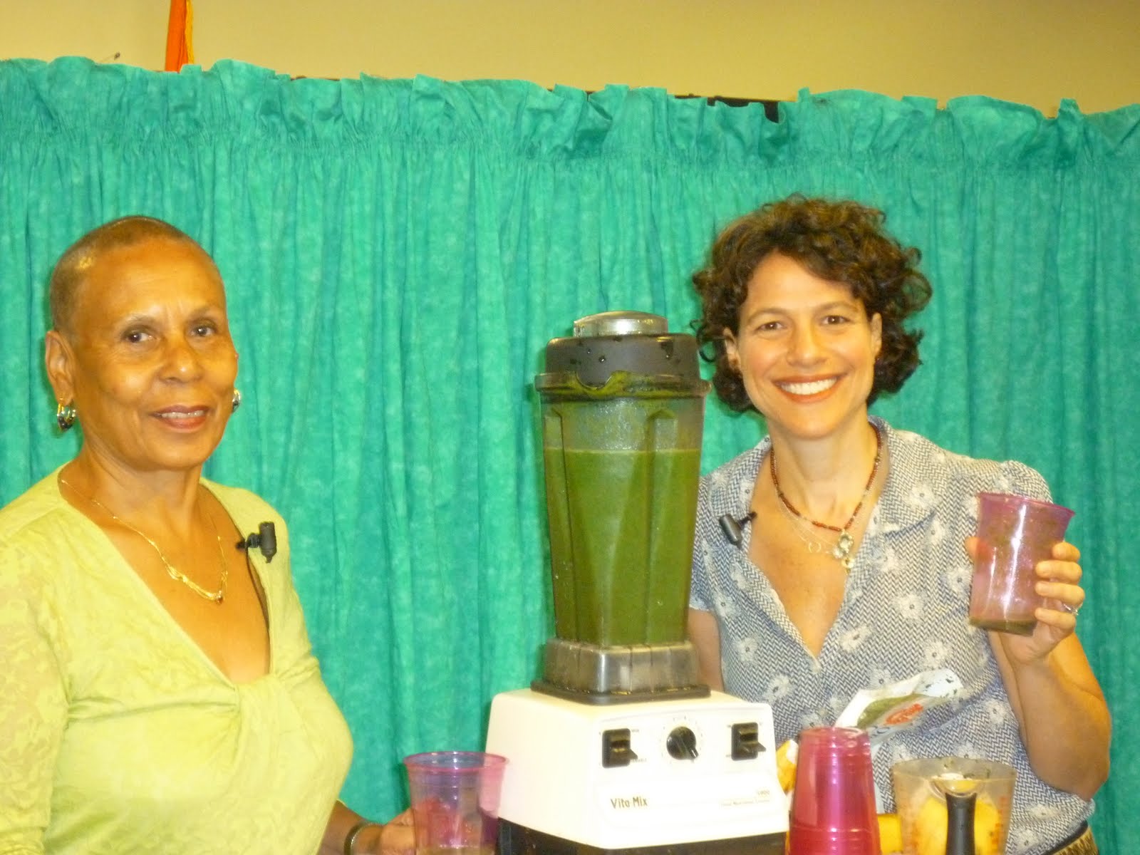 Anyhoo, after the ceremony, we filmed. Stay tuned to see the video in a few weeks of the wonderful time I had with Dolores and her friends, teaching them how easy and nutritious green shakes can be for Seniors and everyone else. Here’ what I made them. Even the cynical self proclaimed “sugar addict” producer said they weren’t bad 🙂
