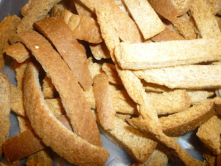 Once the bag is finally filled with crusts, I bake them at 300 degrees on a foil lined baking sheet for 20 minutes or so until they are full toasted